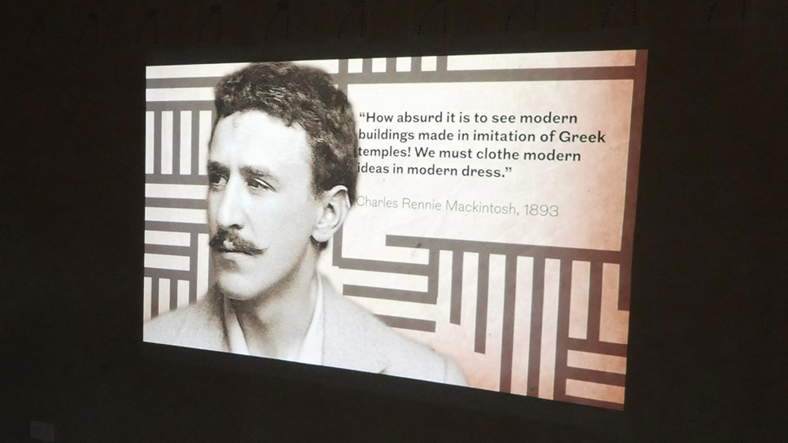 The old Guest Bedroom became a canvas for some spectacular projections, with bespoke AV content and Mackintosh-inspired furniture to house the projector and provide seating for the visitor. Vivid visuals immerse visitors in the story of Charles Rennie Mackintosh at Hill House and beyond.