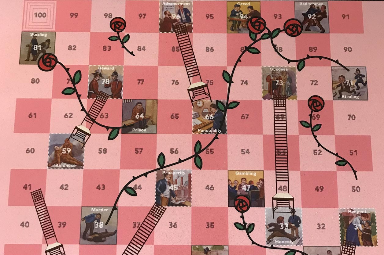 In the old Day Nursery, play became storytelling through shared activity and games. Drawing on extensive research from the German Games Archive and Pollock’s Toy Museum, we created an Edwardian inspired games table featuring a reimagined version of the board game ‘Ups and Downs’.